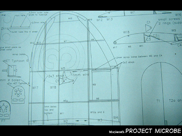 RBC Microbe kit comes in the form of CNC cut balsa with the necessary wires for linkages and also a ring plus a motor mount suitable for Typhoon motor. Instruction comes in the form of technical drawing which also includes the parts listing and minimal written instruction in English.