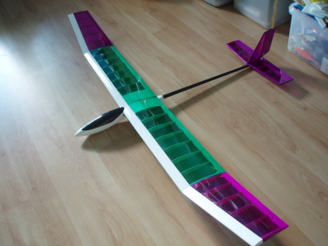 Just completed mounting the servos and the dead weight in the nose. This cheap glider is only 2 channels. Very simple to assemble. I think that the fiberglass pod is a bit too thin though.