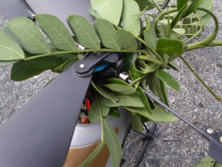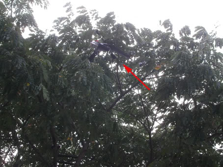 Then I saw the heli tangled to the leaves. I tried to move it. hoping it wil drop down the tree which is 2 level high! hmm i think it's 2 level and a half high.
