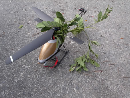 I tried to control it and thought I escaped the tree nearby. (maybe because of my position at that time. Cannot really predict the direction, since the heli is quite far from me)