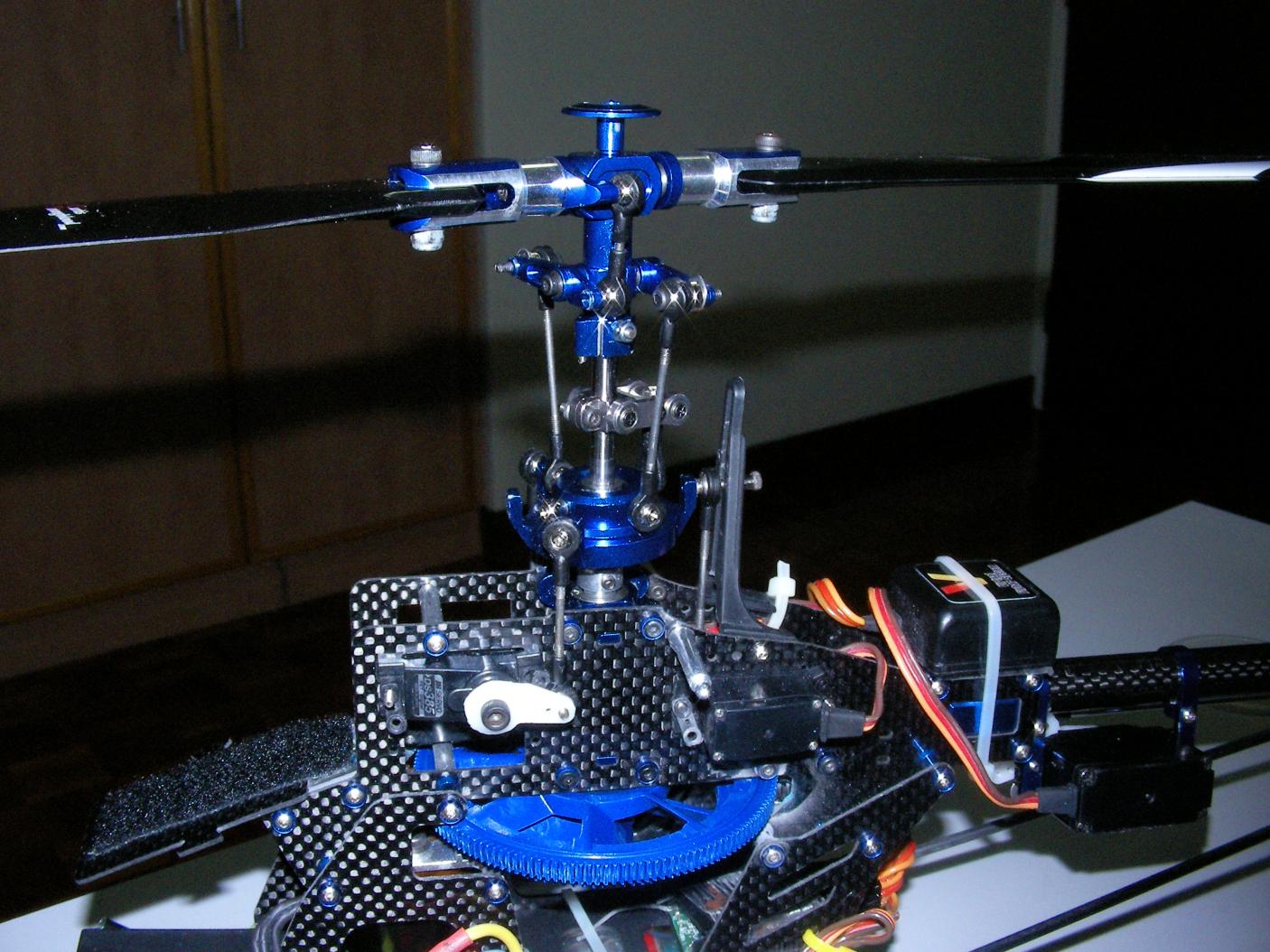 Had my blade separated from the helis during SUnday flights, while waiting for Guao spare. I couldn't resist having the un touch rotor head from flasher seating around. Gone ahead and reseat the arm and linkage to make it flybarless. Takes 15mins to do.