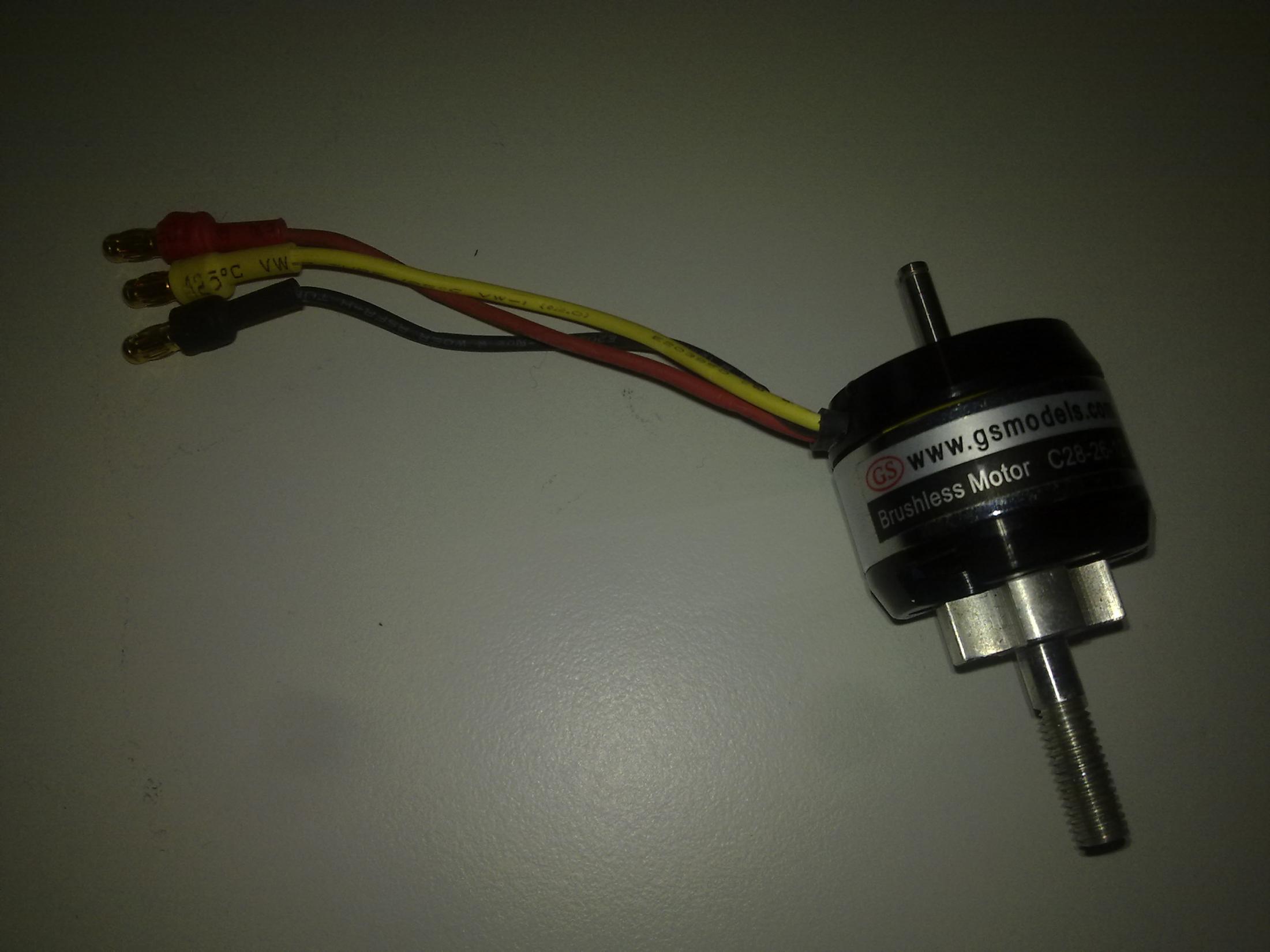 Hi, I am selling [4] GS C28-26-12 Brushless motors. These motors have been used on a couple of flights and I have no use of them anymore as I am moving on to bigger aircraft with bigger motors.