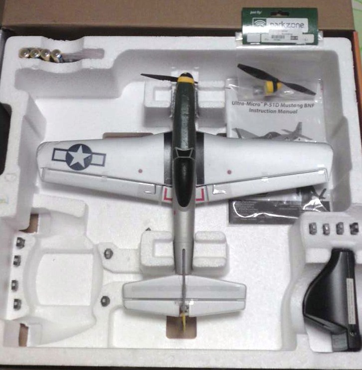 Parkzone ultra-micro P-51D Mustang with 10 batts, charger and spare propeller.