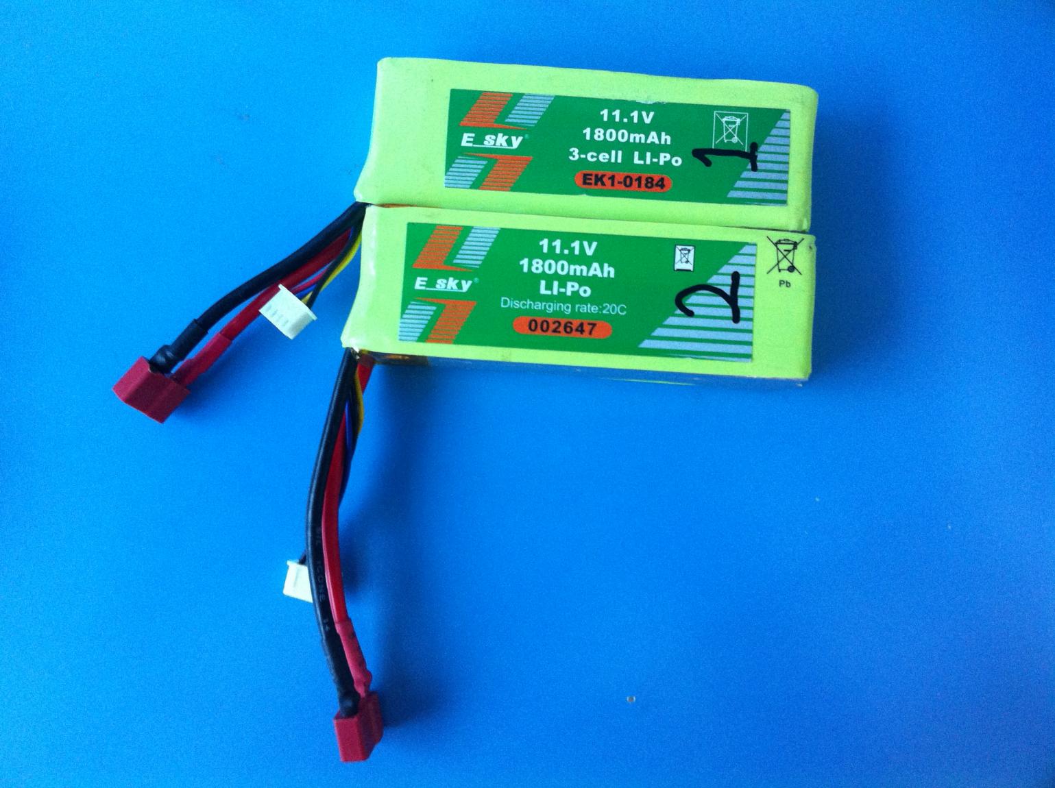 -2 x E-sky 3s lipo, 11.1v 20c, 1800mAh, $12 EA
