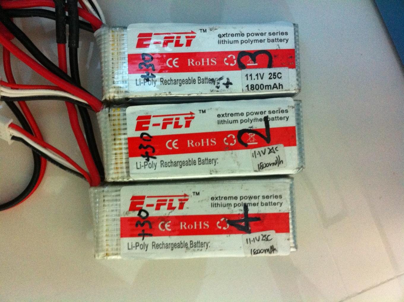 -3 x E-FLY 3s lipo, 11.1v, 25c, 1800mAh, $13 EA
